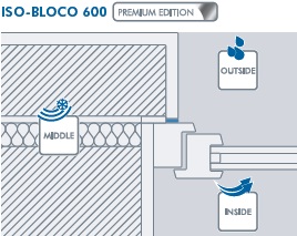 ISO BLOCCO 600, es una cinta selladora PUR impregnada con una dispersión polimérica retar dante de combustión. Proporciona protección contra la lluvia torrencial a mas de 600 Pa ( equivalente a la fuerza del viento en una tormenta violenta).