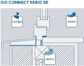 ISO-CONNET VARIO con su elevada elasticidad y su flexibilidad de adaptación compensa los movimientos de las juntas. Hermética y resistente a la lluvia batiente, impermeable a la difusión del vapor. Por las dos caras tiene una tira adhesiva; una pega en el perfil del marco y la otra para pegar en cualquier superficie ( dispone de una malla para adherencia al enlucido ).